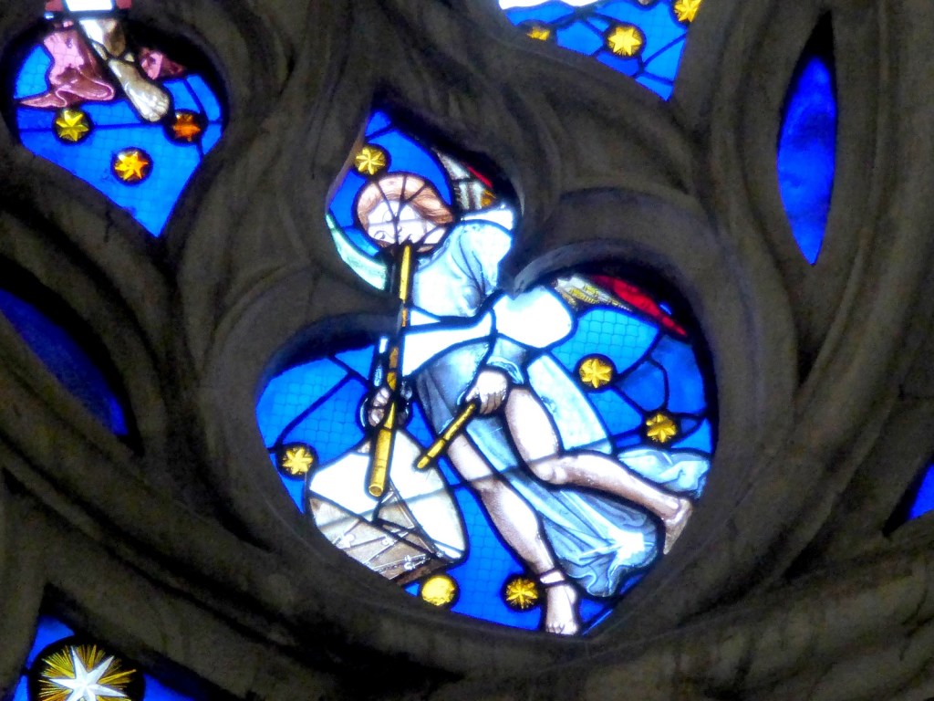 ● La flûte à bec est un des plus anciens instrument à vent. De forme tubulaire, elle est percée de trois, six ou neuf trous. Les plus anciennes flûtes à bec remontent à la Préhistoire et tous les peuples de l’Antiquité l’utilisèrent. Ici, l’ange joue du galoubet.