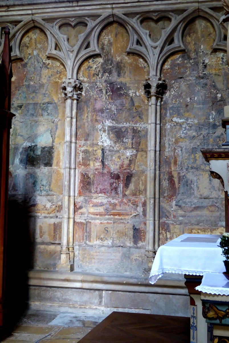 - Peintures murales (XVIIe siècle) dégradées: on peut y voir saint Joseph au milieu