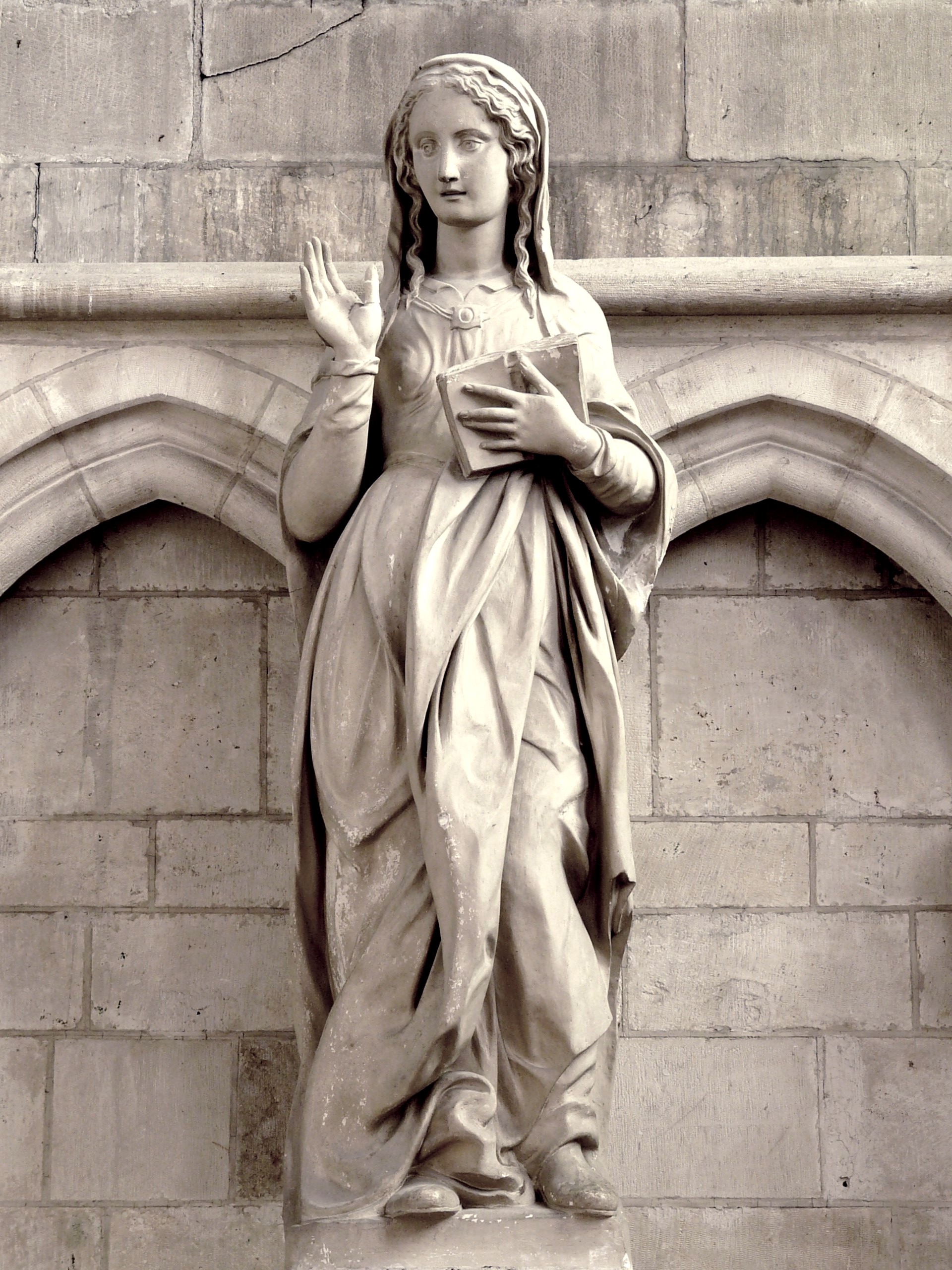 - Statue de Notre-Dame-des-Vertus (XVIe siècle), jadis dans l’ancienne chapelle située dans la cour de la Maison Paroissiale (4, rue de Caylus), sur le côté droit de la cathédrale