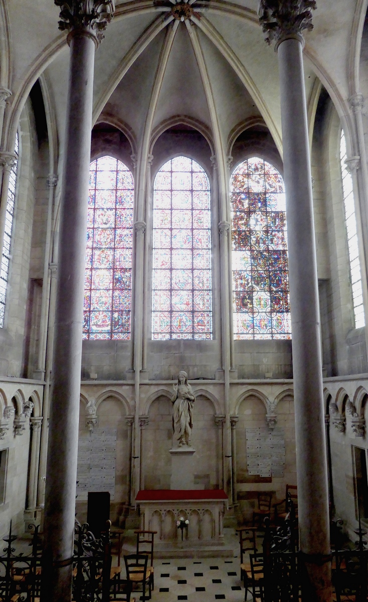 - au milieu : la vie de la Vierge (1879, dans le style du XIIIe siècle). De bas en haut :